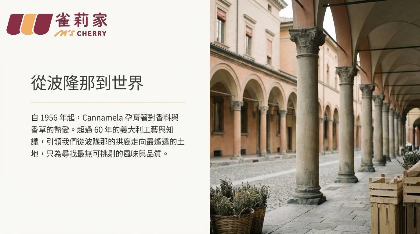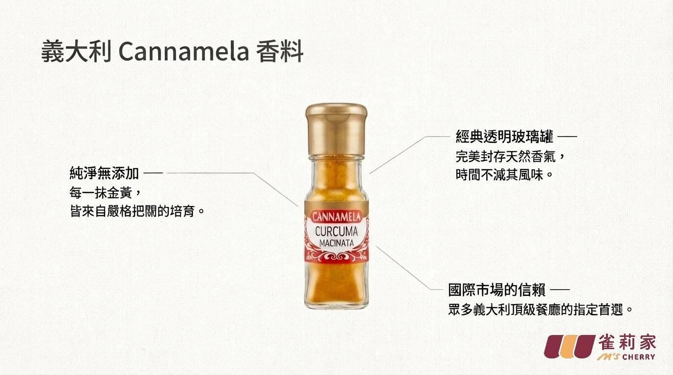 義大利Cannamela香料品牌已有超過60年歷史,眾多義大利餐廳會選擇的香料品牌,Cannamela香料品牌得到國際市場的歡迎,雀莉家認為有四大特色: