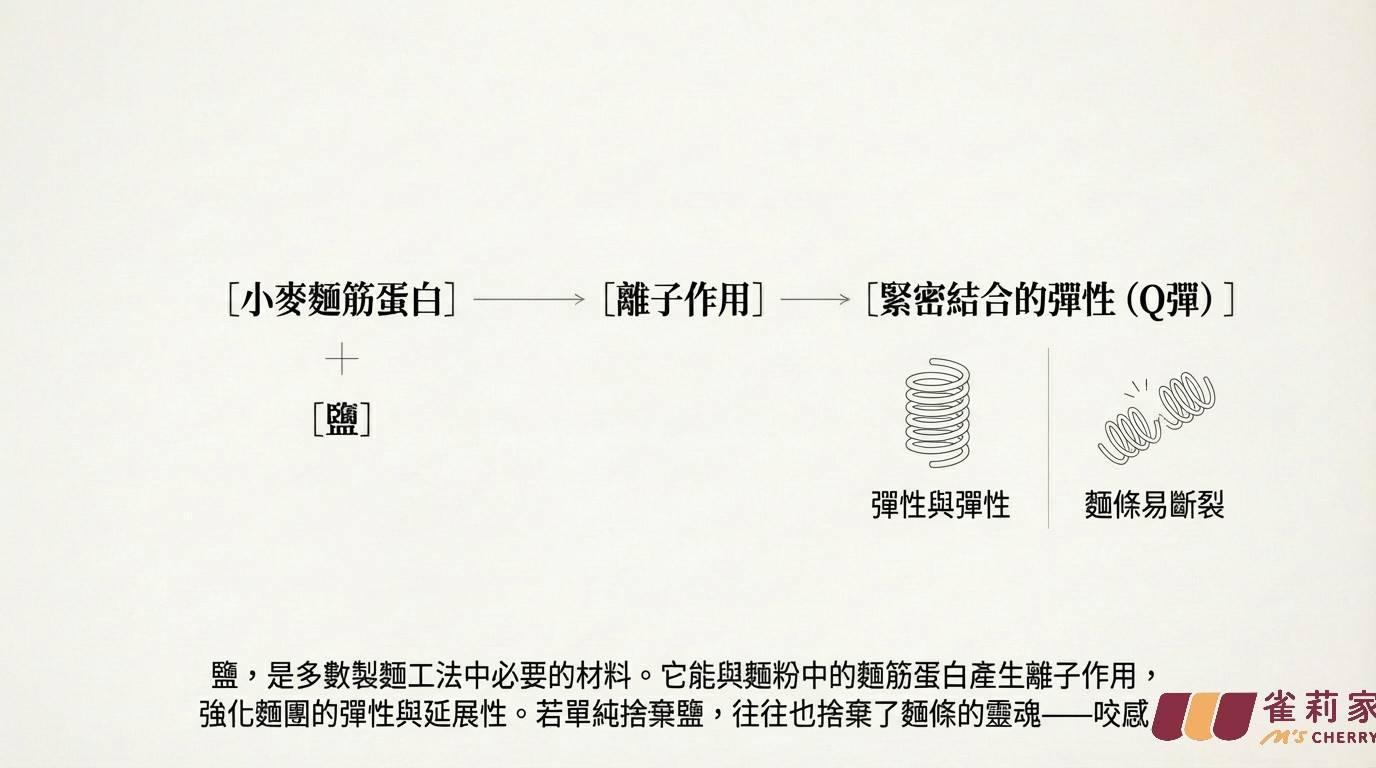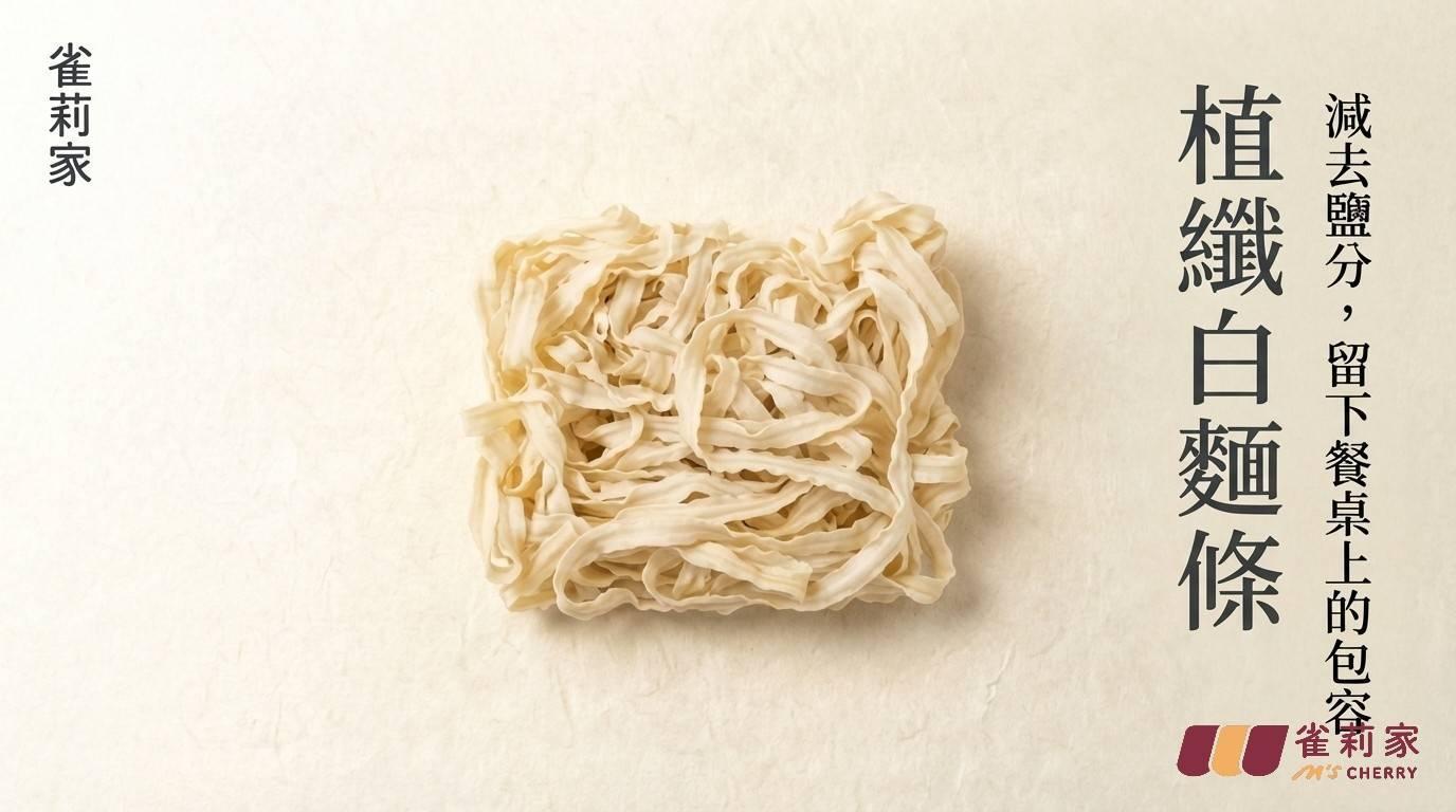 鹽,是多數製麵工法中必要的材料,鹽會與麵粉中的麵筋蛋白產生離子作用,使蛋白質更緊密結合,強化麵團的彈性與延展性,麵條才不易斷裂。雀莉家在日本飲食中發現無添加鹽的製麵工法,麵條還是非常彈性,於是在2025年日本東京食品展,我們結識了到日本打拼的台灣隆興製麵廠,超過一甲子的老麵廠,傳承三代,隆興已是台灣特色營養麵條的領導廠商,雀莉家與隆興合作開發了這款【無添加鹽】的白麵條,降低負擔,維持了麵體的彈性。我們怎麼做到的呢?