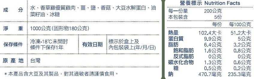 l 香草雞/香菇雞湯/1,000g(固180g) l