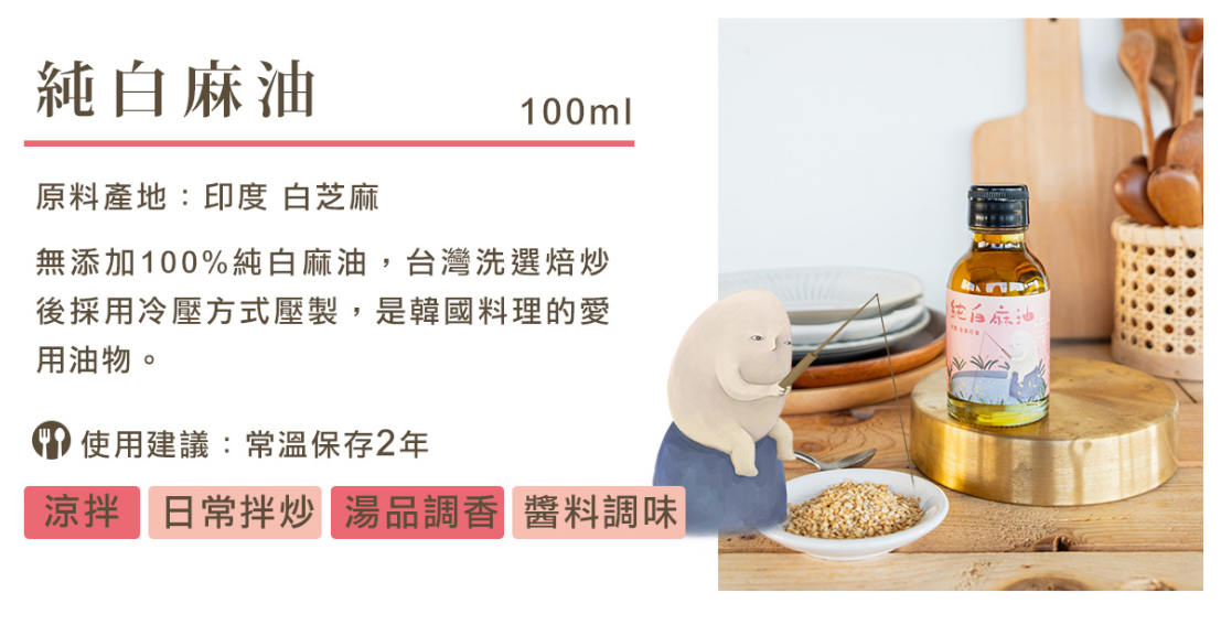 l 金弘/職人工藝/冷壓純白麻油(小鮮瓶)/100ml l