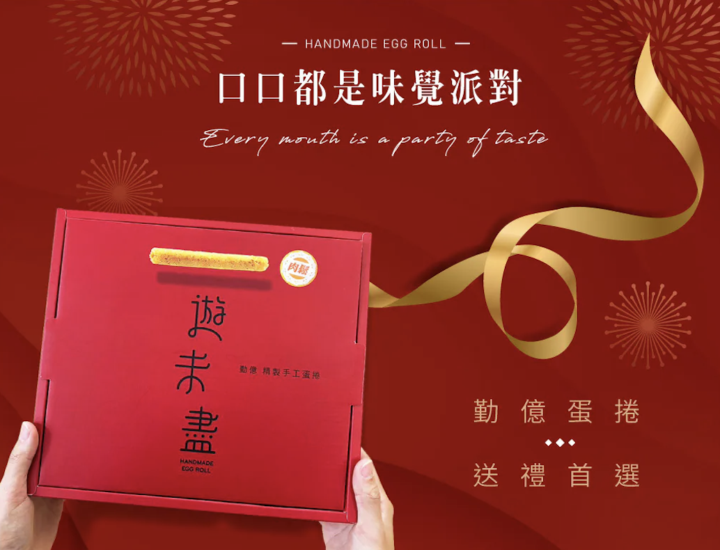 勤億的肉鬆蛋捲,採取兩支一包的精巧份量,兩個人吃恰恰好,一個人吃也不會覺得罪惡,三個人吃則可以在分食的過程中產生更多樂(屑)趣(屑)。以每日生產的新鮮液蛋為原料,散發濃郁的蛋香,配上特製肉鬆的鹹香,交融出微甜中帶點鹹的豐富口感,純手工捲製,鬆脆好滋味。蛋捲可以是下午茶小點,也可以是深夜解饞,又或是野餐郊遊的良伴,送禮自用兩相宜。