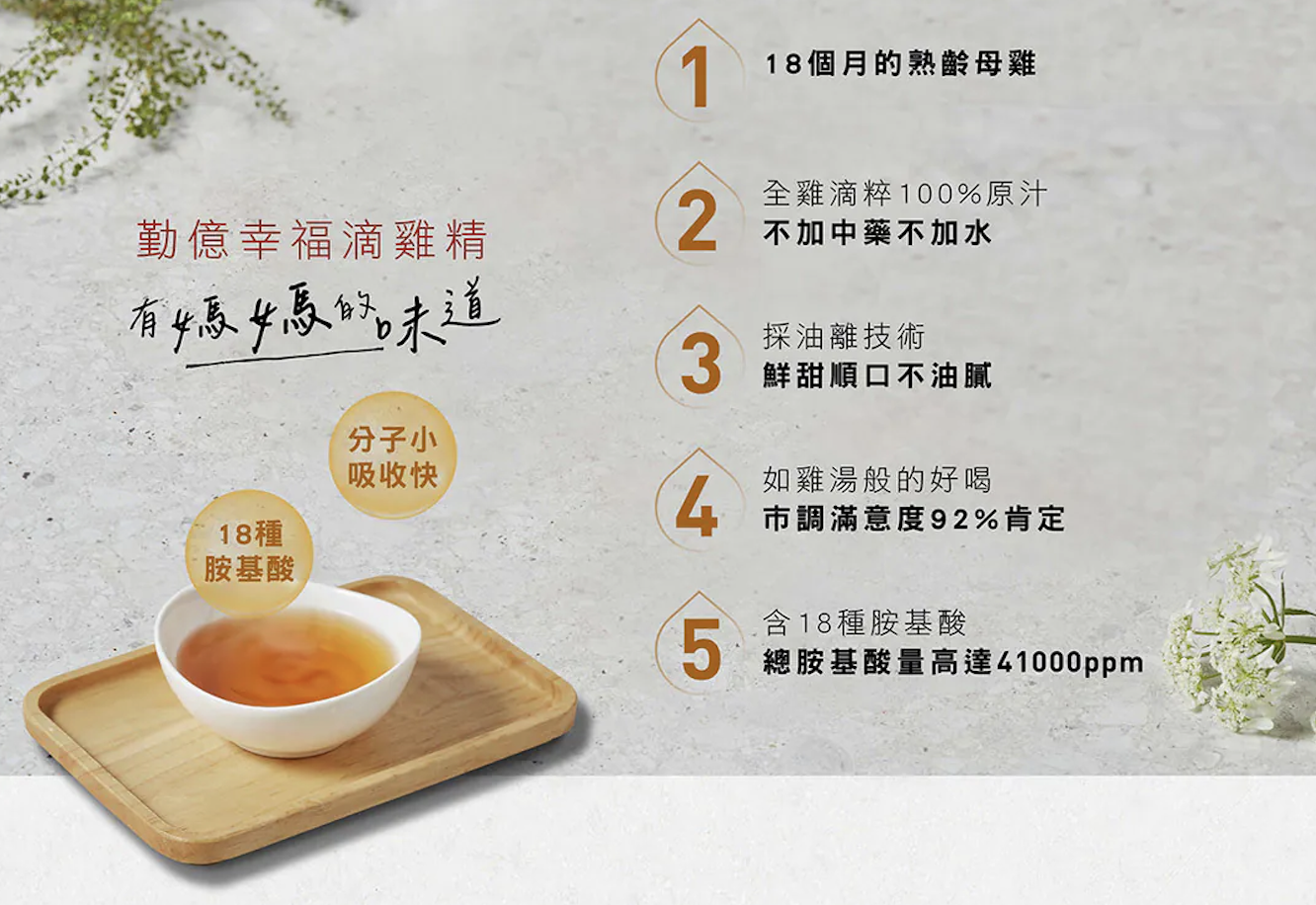 勤億的幸福滴雞精,懂你不擅言辭的體貼。以最嚴謹的工序,將這份沈甸甸的情感,熬煉成一碗純粹的精華:
