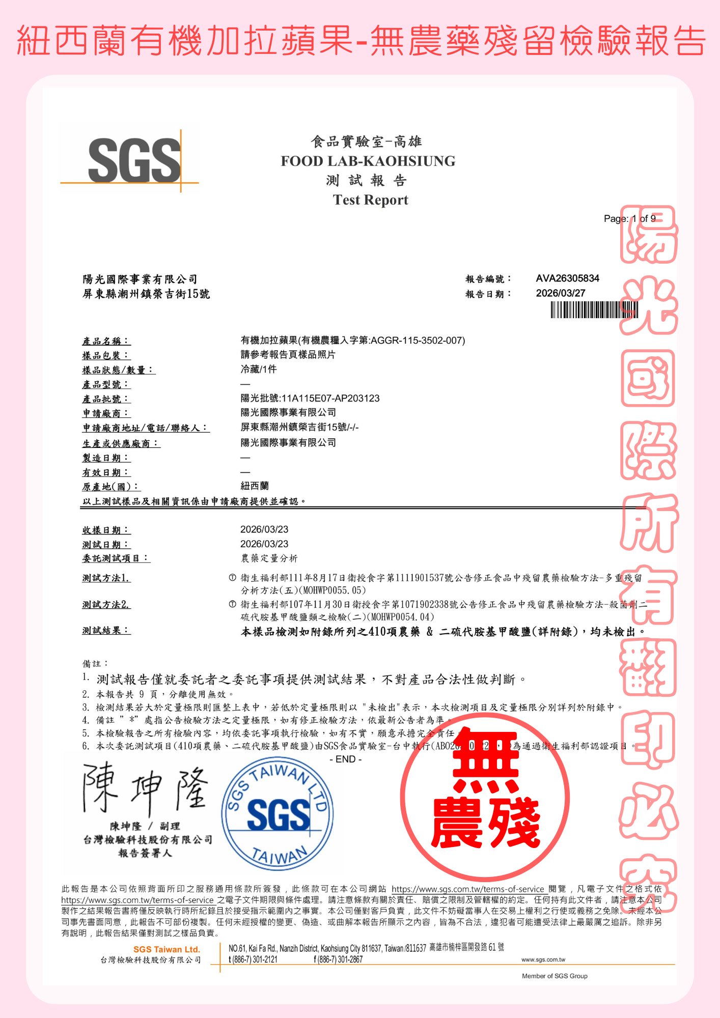 有機標示同意文件第AGGR-115-3502-007號 有機認證單位:BIOGRO NEW ZEALAND LTD