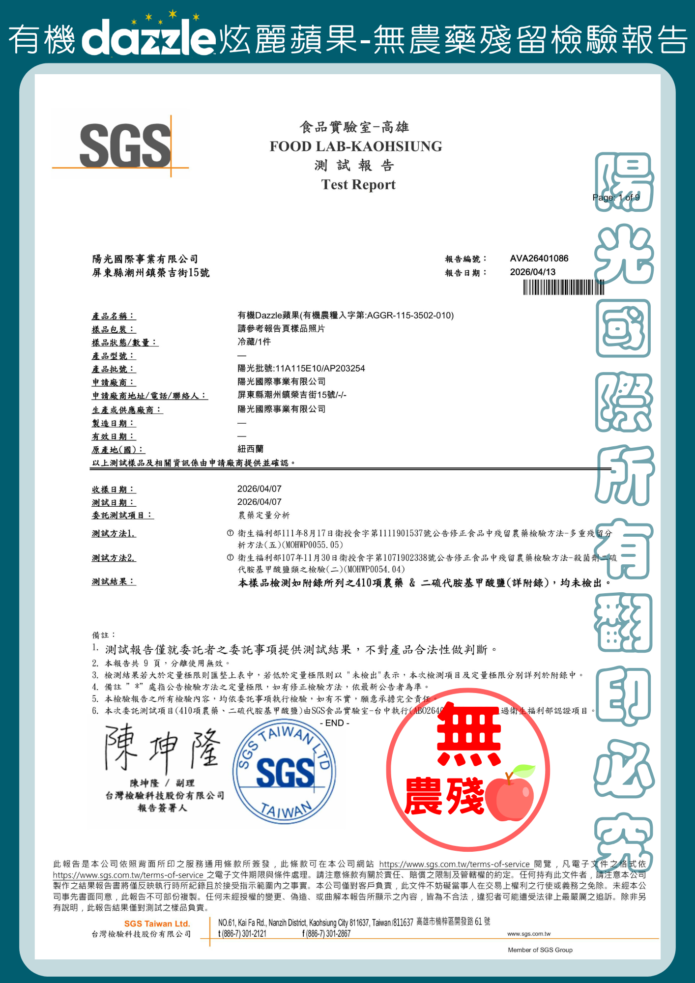 ⭐台灣知名有機水果品牌陽光國際(Sun Organic)出品